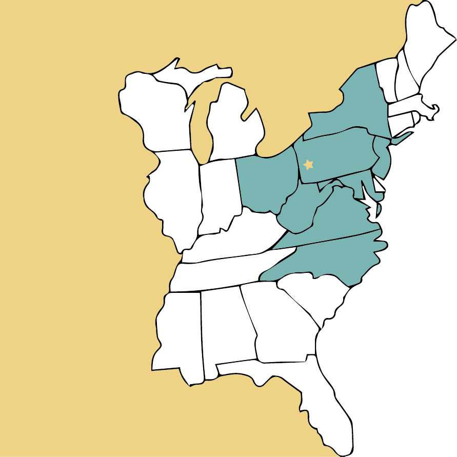 Ohio, Pennsylvania, Maryland, West Virginia, Virginia, North Carolina, Maryland, & New York
